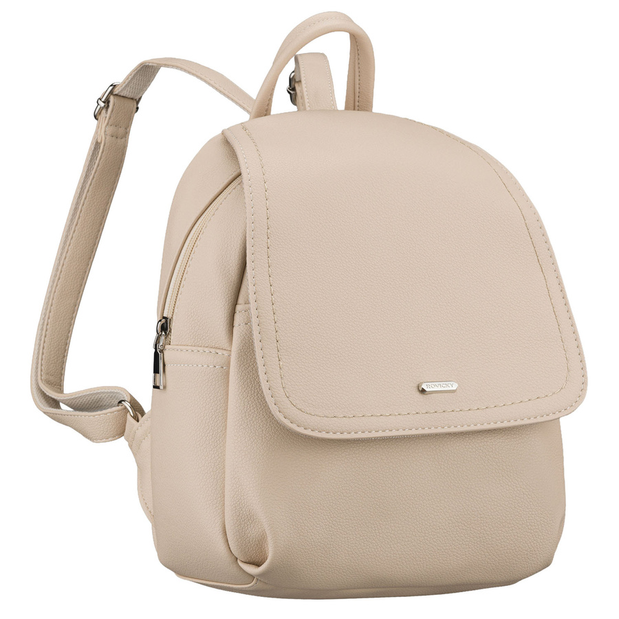 Miejski plecak damski ze skóry ekologicznej w ciemnobeżowym kolorze - Rovicky