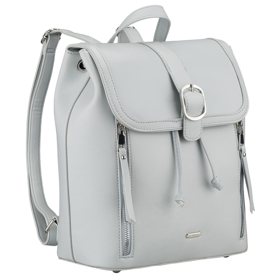 - Szary plecak uszyty z wysokiej jakości skóry ekologicznej. Jednokomorowy model zamykany klapką na magnes i suwakami. Wyposażony w wygodny uchwyt, nóżki na spodzie i regulowane szelki.